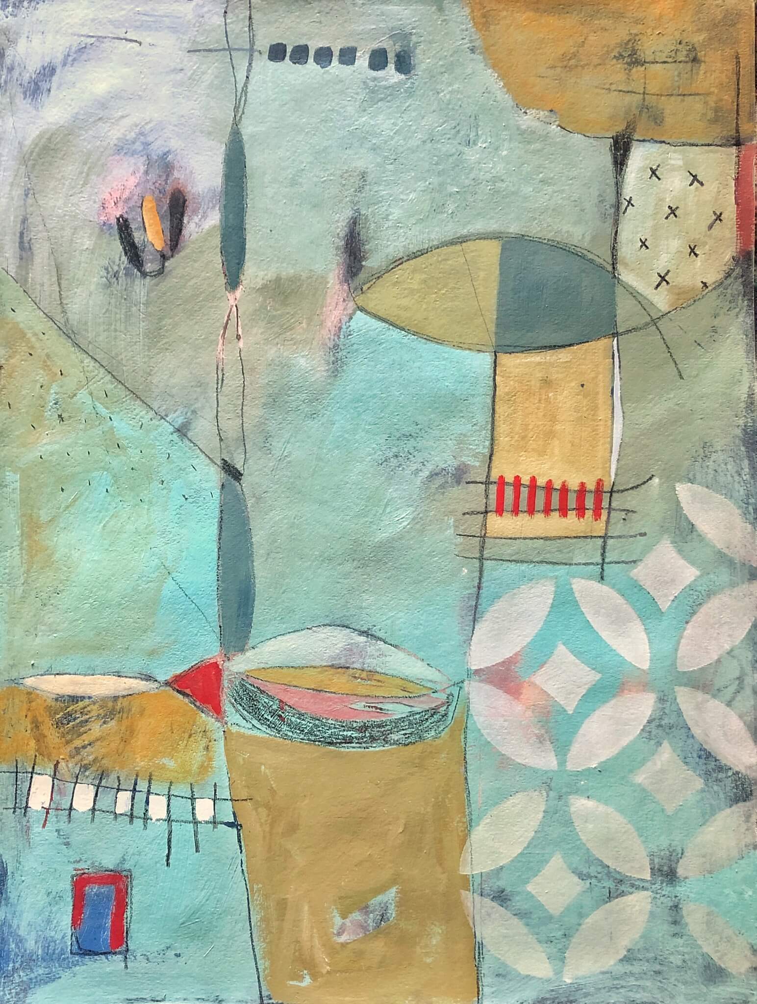 Mixed media on watercolor paper.
