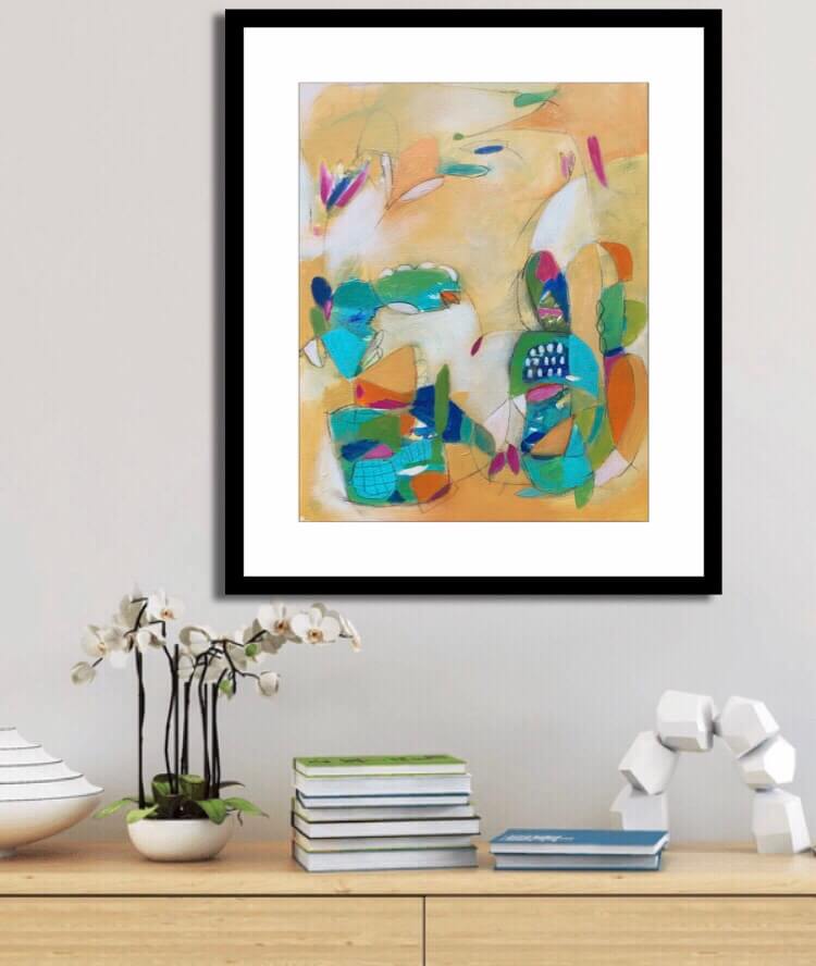 Size: 16″x20″x.5″ The sides are painted and it is wired and ready to hang. Signed and titled on the back. Ships flat in a box.