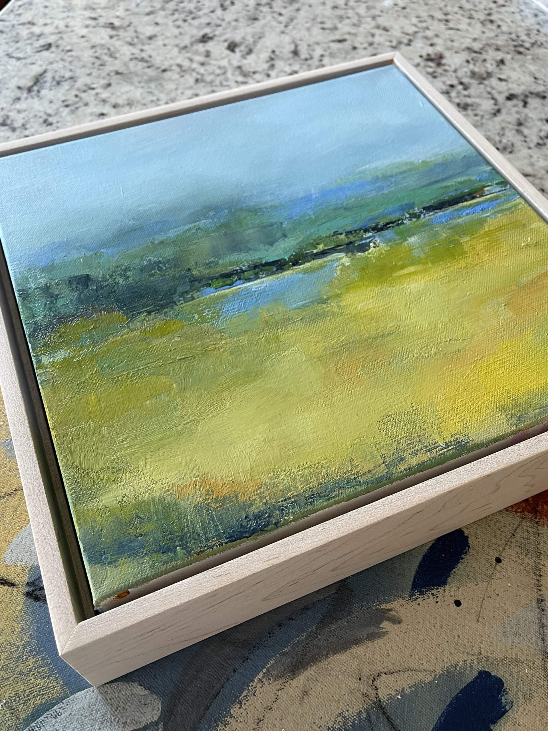Size: 12”x12”x1.5″ Acrylic on Gallery Wrapped Canvas. It is wired and ready to hang. Floater frame included. Signed and titled on the back. Ships flat in a box.