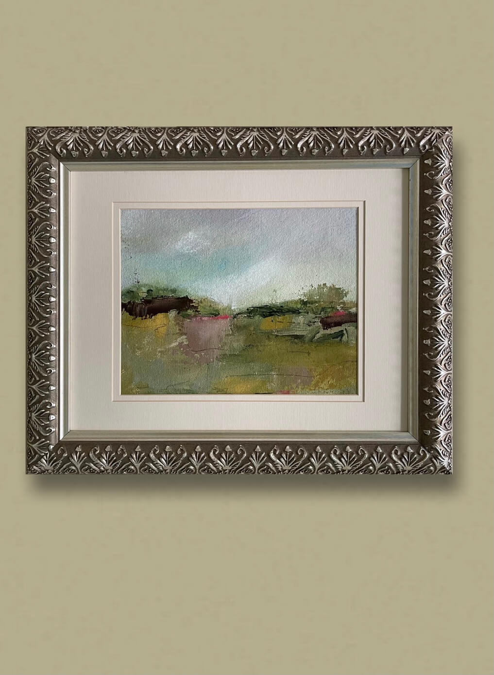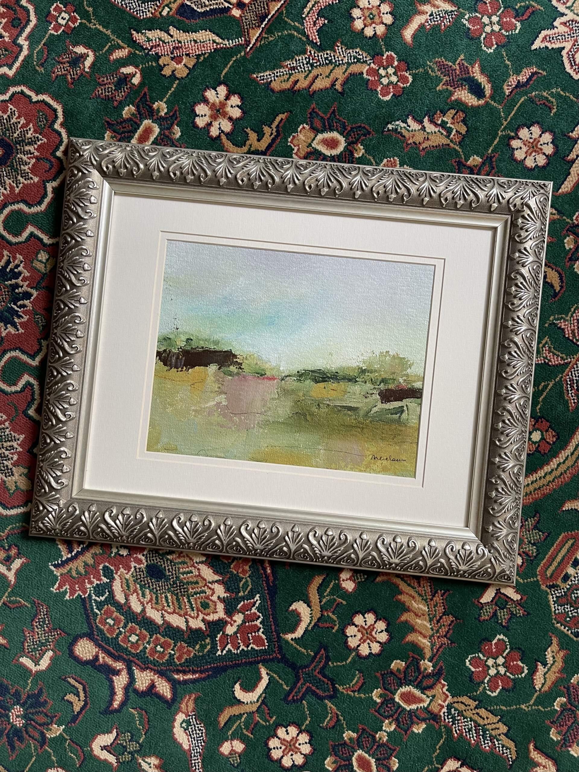 Acrylic on unstretched canvas, frame included.
