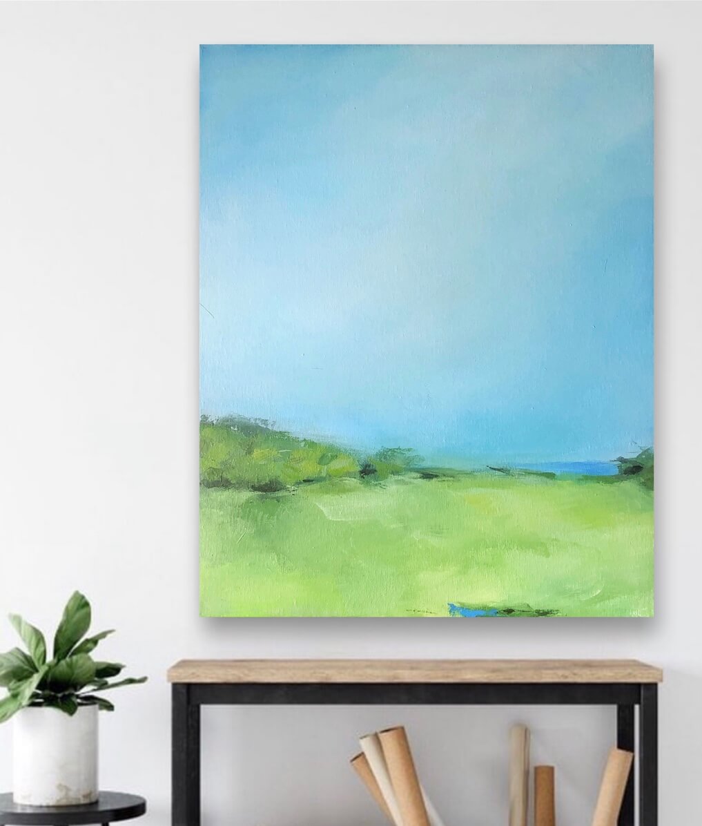 Size: 16″x20″x.5″ Acrylic on canvas. The sides are painted and it is wired and ready to hang. Signed and titled on the back. Ships flat in a box. Floater frame available for an extra charge.