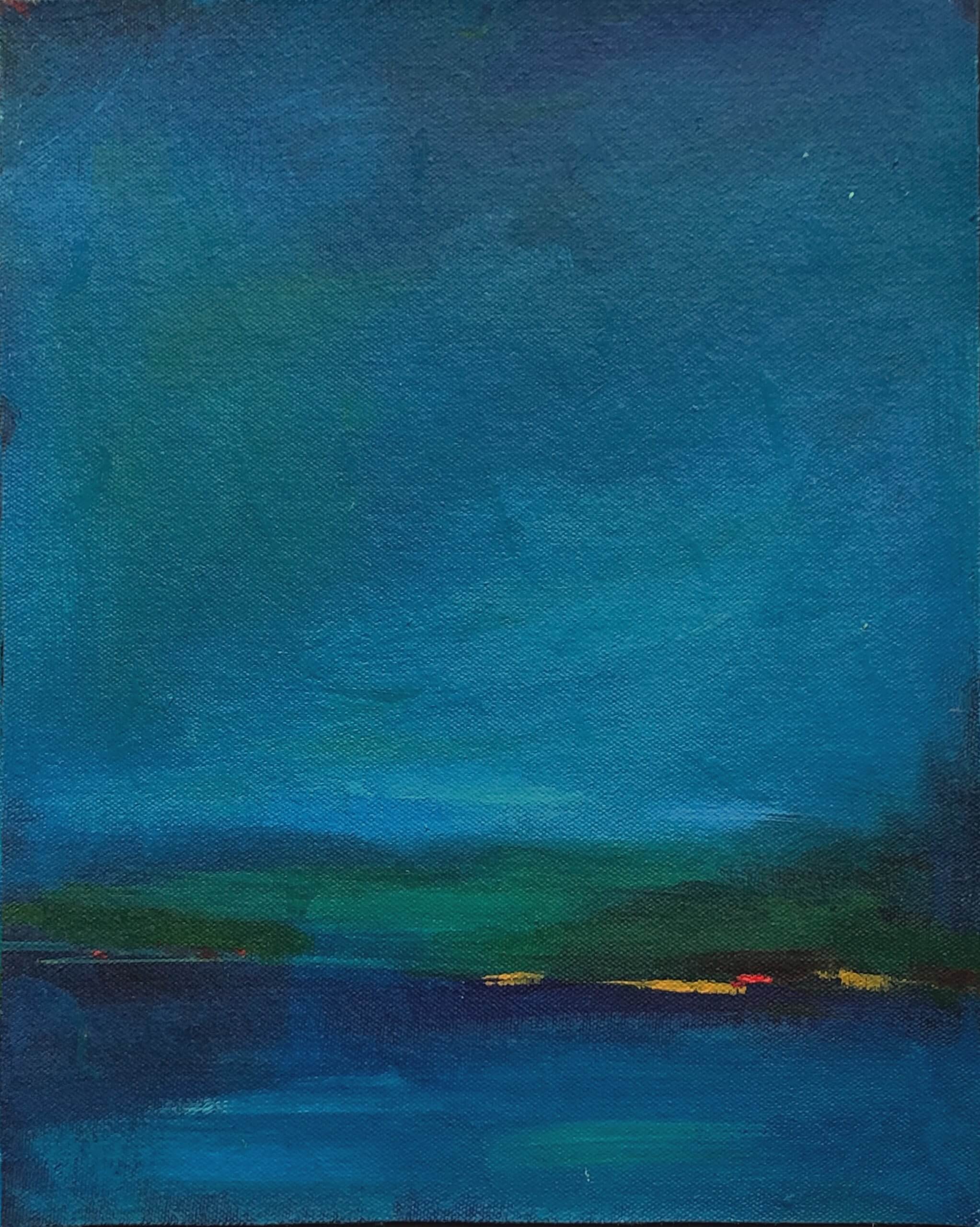 Size: 9”x12” Matt size: 12”x16” Acrylic on unstretched canvas. Signed and titled on the back. Ships flat in a box