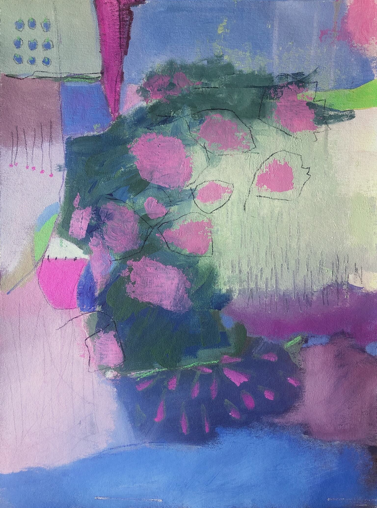 Size: 18”x24” Mixed media on unstretched canvas. Signed and titled on the back. Frame not included. Ships rolled.